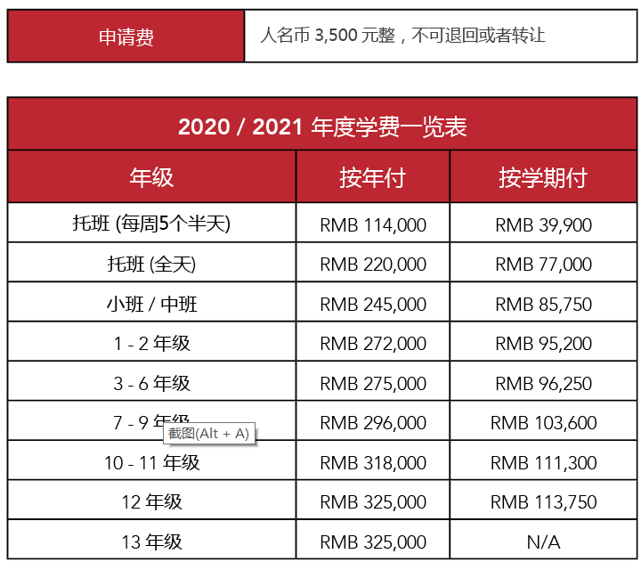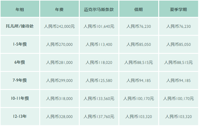 学费:小学部15.6万/年,初中19万/年,高中21万/年