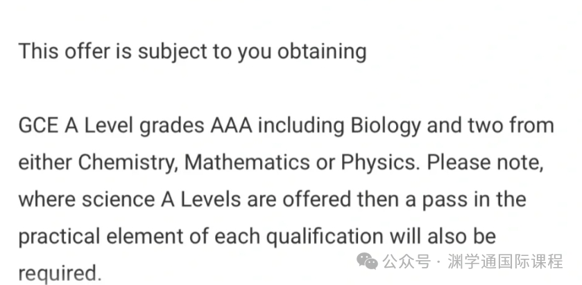 2025年Con要求:以Z同学收到的Con Offer为例,该专业要求为AAA,生物A+数学/物理/化学择其一。