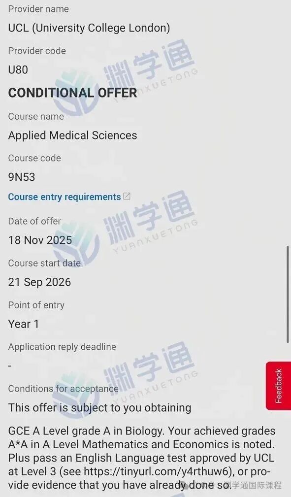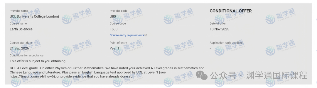 以下是渊学通学员在本次申请季收到的部分UCL Offer,一起来看看大家拿到了多高的Con吧~